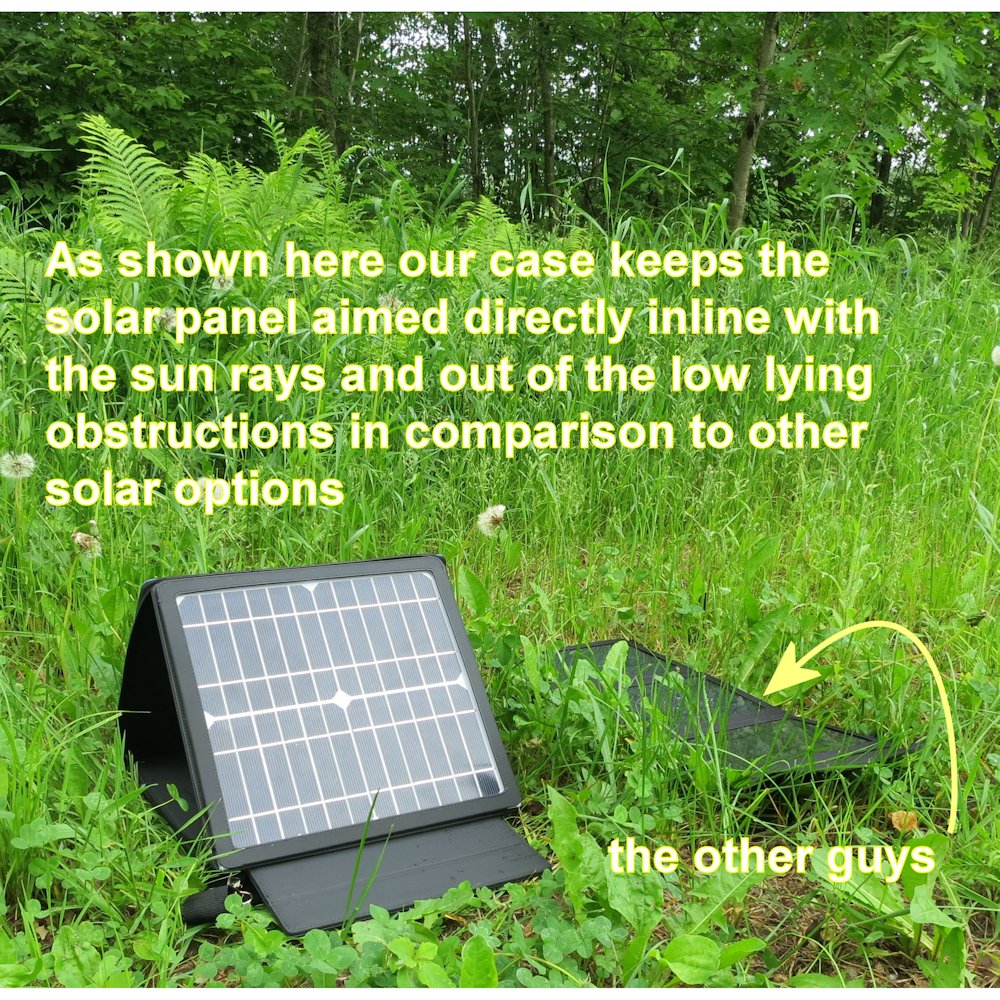 The front facing solar panel turns the sun's energy into clean, regulated power that will charge your device(s).